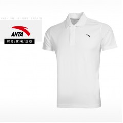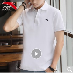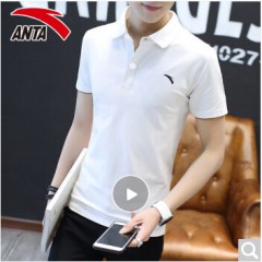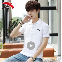 安踏短袖男t恤翻领运动服饰2020年夏季薄款半袖男士宽松速干圆领上衣休闲POLO衫冰丝手感跑步健身装 -1纯净白-翻领