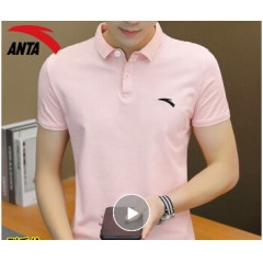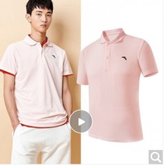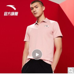 安踏短袖男士T恤2020夏季翻领t恤polo衫休闲速干时尚运动服饰柔软冰丝手感透气男士上衣 -4A230蜜粉色