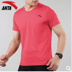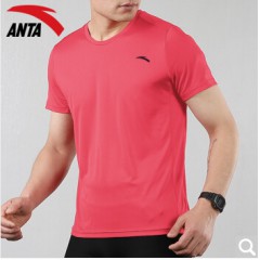 安踏T恤男短袖2020年夏季薄款圆领男装速干透气舒适跑步上衣冰丝手感男士运动服饰半袖 -1柚红色