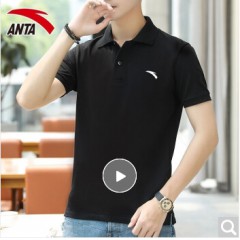 安踏短袖男t恤翻领运动服饰2020年夏季薄款半袖男士宽松速干圆领上衣休闲POLO衫冰丝手感跑步健身装 -9基础黑-翻领