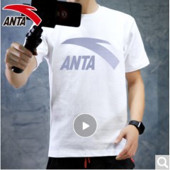 安踏短袖t恤男装运动上衣2020年夏季款青年薄款学生文化衫透气速干户外圆领休闲跑步健身服饰官方 -3纯净白/灰标