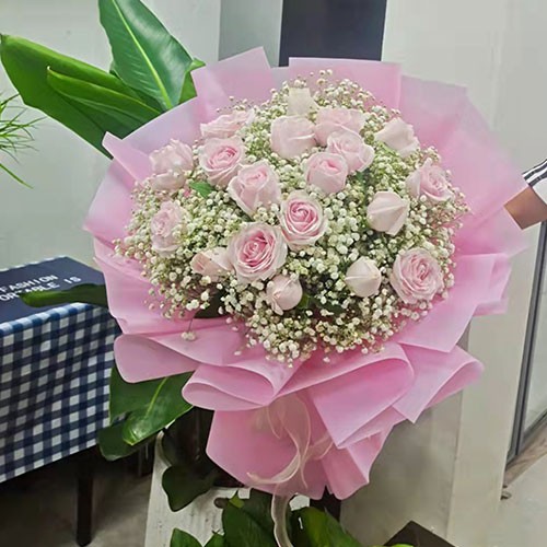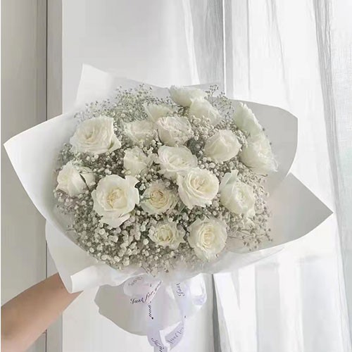 雪山 白玫 满天星 花束
