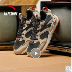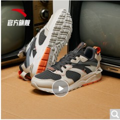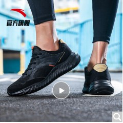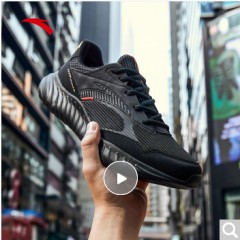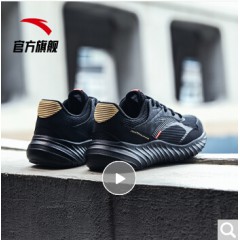 安踏 ANTA 安踏官网旗舰男鞋 2020春季新款男士舒适休闲透气跑步鞋运动鞋潮 黑/金属金
