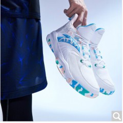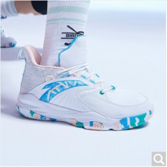 安踏篮球鞋男运动鞋2020夏季新品汤普森KT球鞋耐磨防滑潮流运动革面休闲鞋高帮战靴912011186 -3/安踏白/氯蓝/婴儿粉