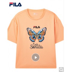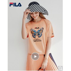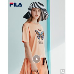 FILA斐乐女装WHITE LINE官方高圆圆同款运动蝴蝶绣花刺绣短袖T商场同款 沙橘色-OR