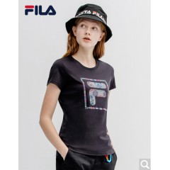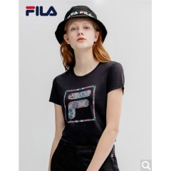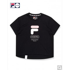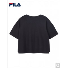 FILA斐乐女装 FUSION系列官方女子短袖T恤 2020夏季新款丝柔棉时尚半袖T恤女商场同款 深黑-BK