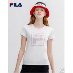 FILA 斐乐官方女子短袖T恤 2020夏季新款百搭时尚丝柔棉圆领T恤 标准白-WT