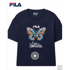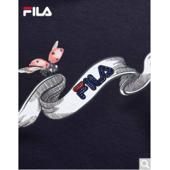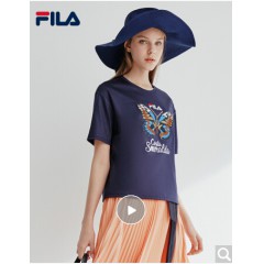 FILA斐乐女装WHITE LINE官方高圆圆同款运动蝴蝶绣花刺绣短袖T商场同款 深水手蓝-DB
