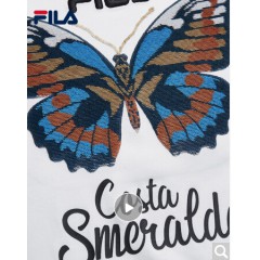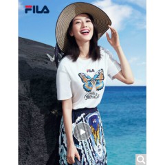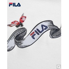 FILA斐乐女装WHITE LINE官方高圆圆同款运动蝴蝶绣花刺绣短袖T商场同款 标准白-WT