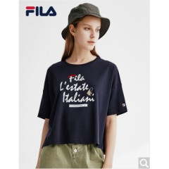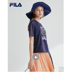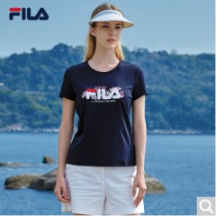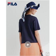 FILA 斐乐官方女子短袖T恤 2020夏季新款百搭时尚丝柔棉圆领T恤 传奇蓝-NV