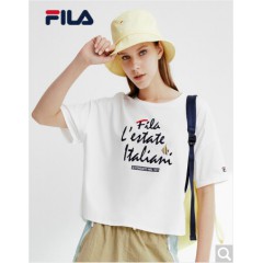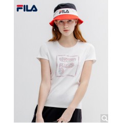 FILA斐乐女装 FUSION系列官方女子短袖T恤 2020新款丝柔棉时尚半袖T恤女商场同款 标准白-WT