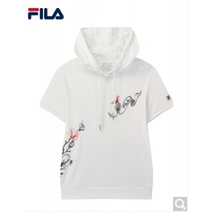 FILA斐乐女装WHITE LINE官方女子短袖T恤2020夏新款运动时尚绣花百搭连帽短袖t商场同款 标准白-WT
