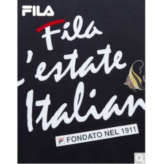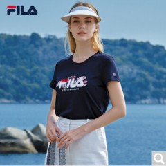 FILA斐乐女装White Line系列官方女子短袖T恤夏季新款印花短袖衫女装商场同款 传奇蓝-NV