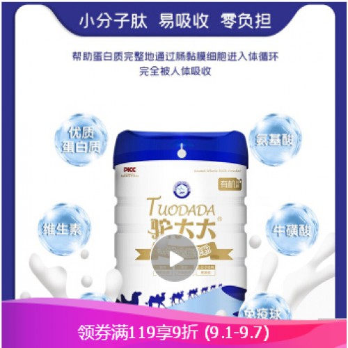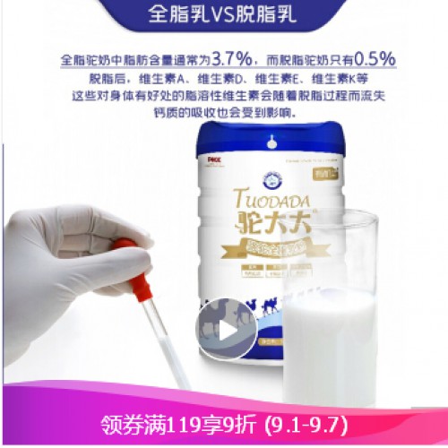 驼大大骆驼奶粉 新疆双峰驼中老年奶粉成人儿童青少年孕妇高钙全脂新鲜驼奶300G
