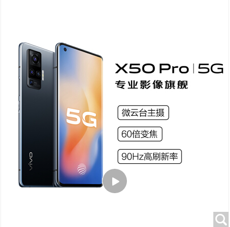 商品名称:vivo X50 Pro 5G手机 8+128GB 黑镜 微云台超感光主摄 60倍变焦 90Hz轻薄曲面屏 双模5G全网通手机
