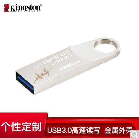 商品名称:金士顿(Kingston)128GB USB3.0 U盘 DTSE9G2 银色 高速读写 个性化自定义定制
