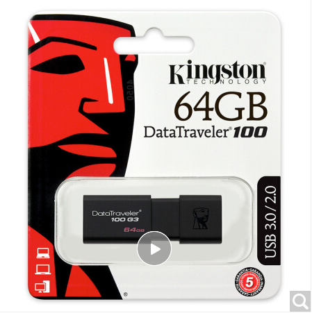 商品名称:金士顿(Kingston)64GB USB3.0 U盘 DT100G3 黑色 滑盖设计 时尚便利