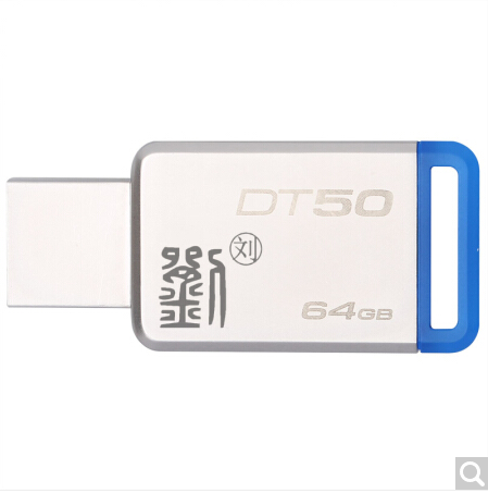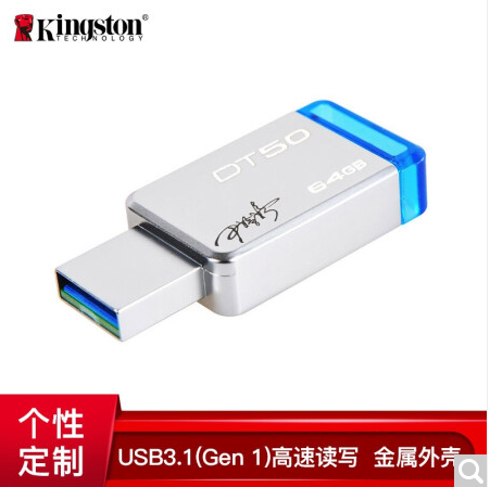 商品名称:金士顿(Kingston)64GB USB3.1 U盘 DT50 蓝色 金属外壳 个性化自定义定制