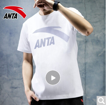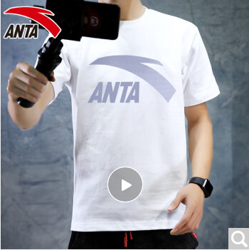 商品名称:安踏短袖t恤男装运动上衣2020年夏季款青年薄款学生文化衫透气速干户外圆领休闲跑步健身服饰官方 -3纯净白/灰标