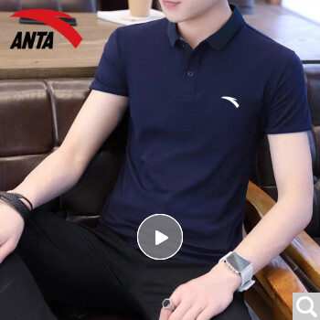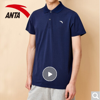 商品名称:安踏短袖男t恤翻领运动服饰2020年夏季薄款半袖男士宽松速干圆领上衣休闲POLO衫冰丝手感跑步健身装 -8A51912明月蓝-翻领