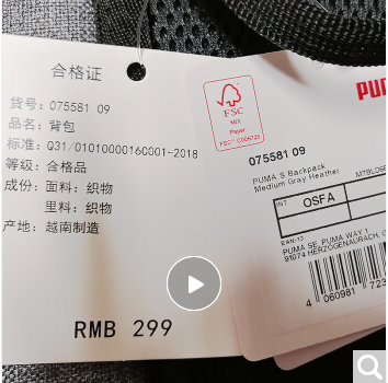 商品名称:彪马(PUMA) 男女 双肩包 背包 休闲包 学生书包 PUMA S 运动包 075581 09灰色大号