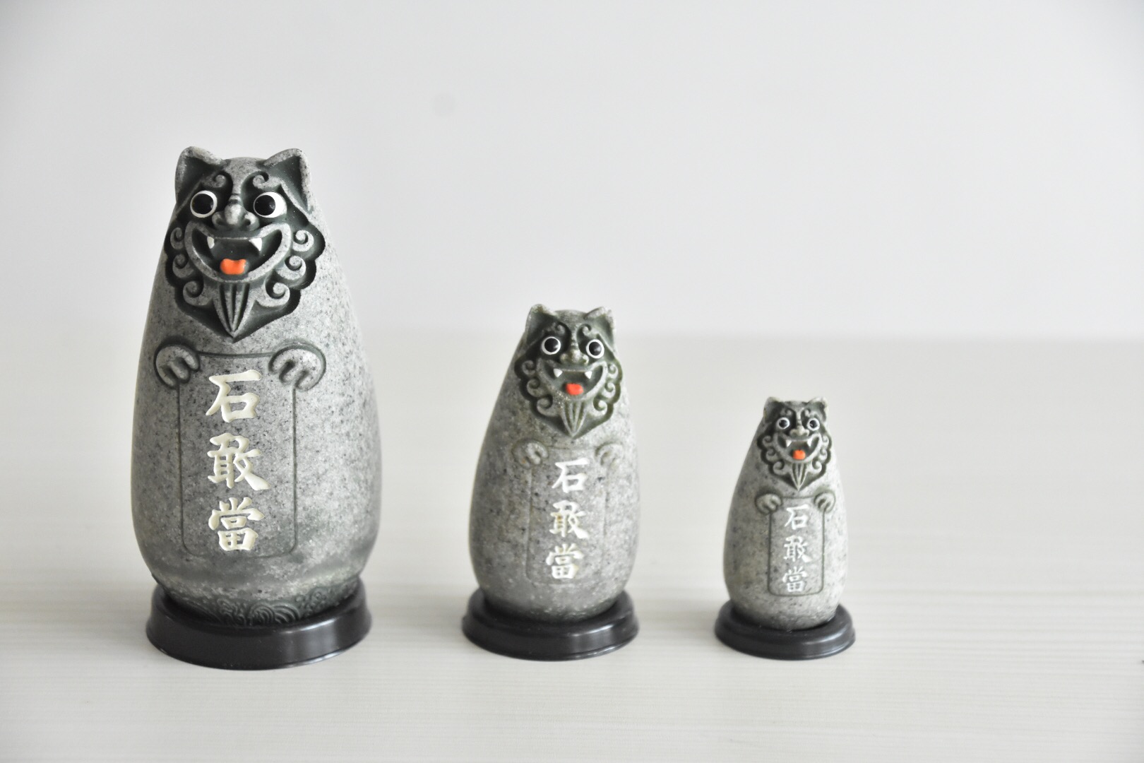 降魔的石敢当风水摆件:风狮爷四兄弟吉祥瘦高款黄砂色