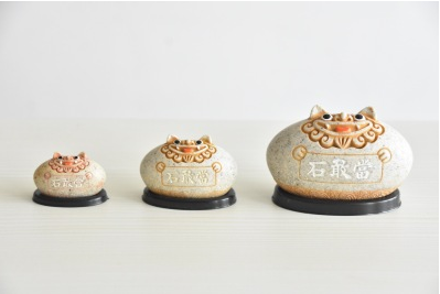 降魔的石敢当风水摆件:石敢当风狮爷四兄弟圆款黄砂色