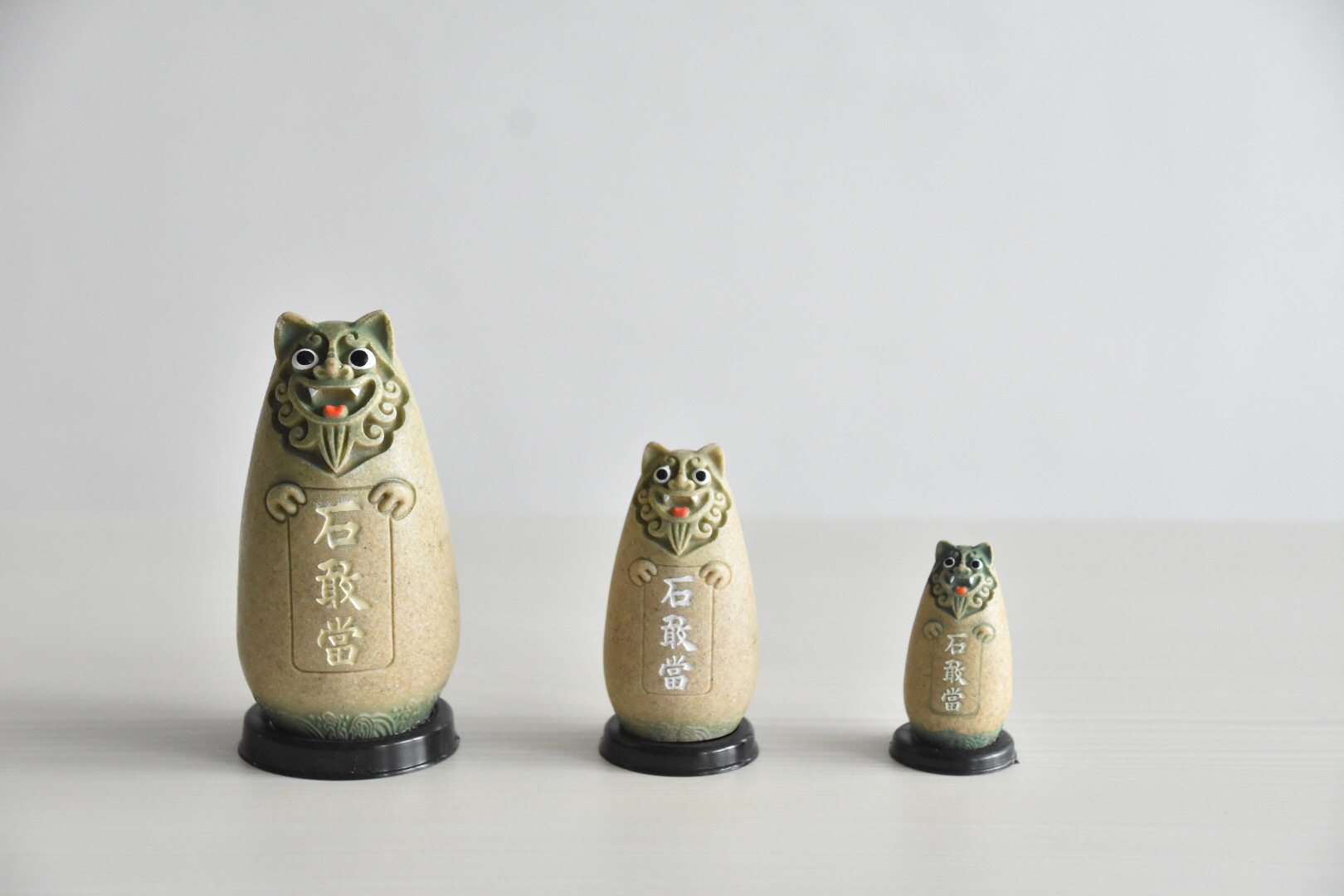 降魔的石敢当风水摆件:风狮爷四兄弟福气圆润款绿砂色