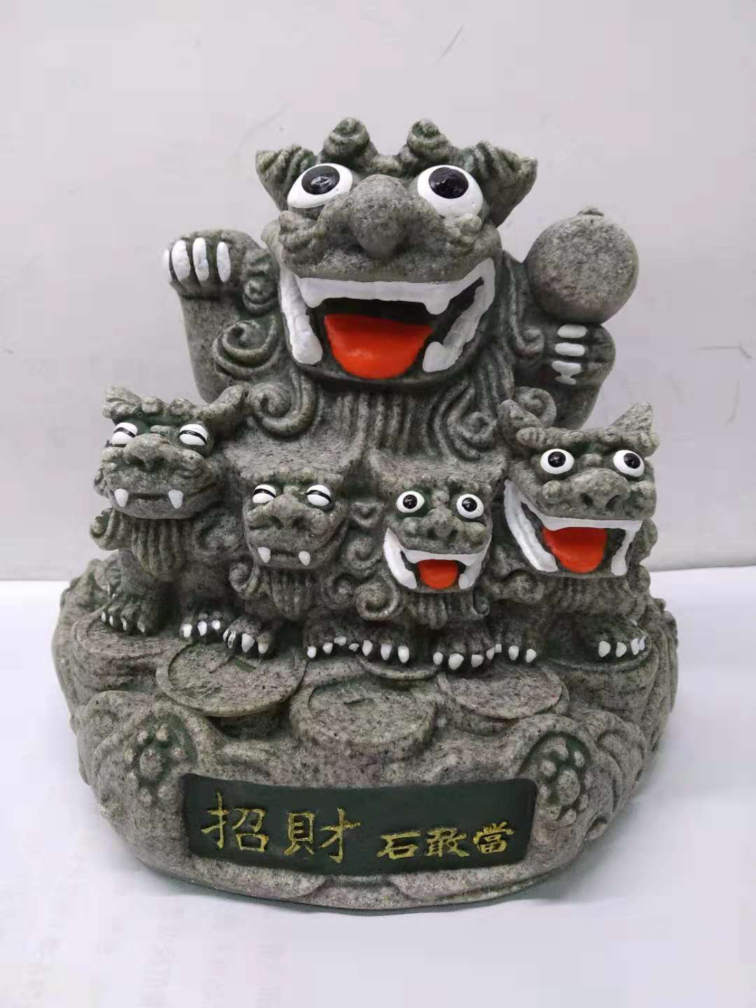 商品名称:除魔的招财石敢当风水镇宅摆件:招财王头狮 砂石色
