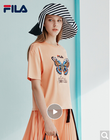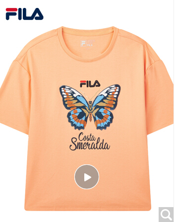 商品名称:FILA斐乐女装WHITE LINE官方高圆圆同款运动蝴蝶绣花刺绣短袖T商场同款 沙橘色-OR