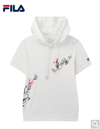 FILA斐乐女装WHITE LINE官方女子短袖T恤2020夏新款运动时尚绣花百搭连帽短袖t商场同款 标准白-WT