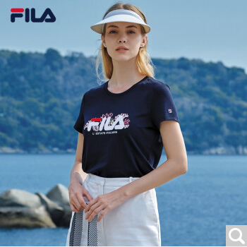 FILA 斐乐官方女子短袖T恤 2020夏季新款百搭时尚丝柔棉圆领T恤 传奇蓝-NV