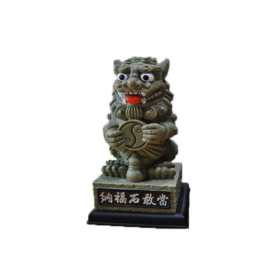 除魔的招财石敢当风水镇宅摆件:招财王头狮 青石色