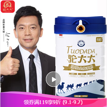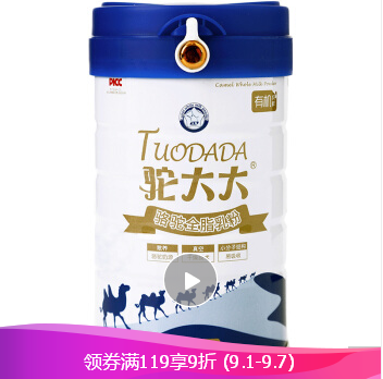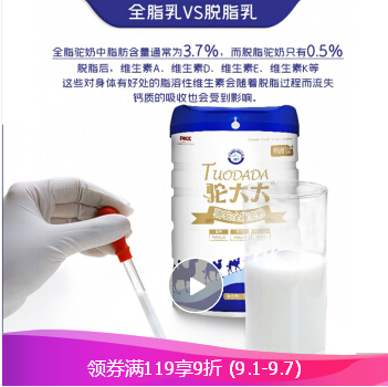 商品名称:驼大大骆驼奶粉 新疆双峰驼中老年奶粉成人儿童青少年孕妇高钙全脂新鲜驼奶300G