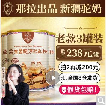 商品名称:臻牧骆驼奶粉新疆伊犁那拉驼奶粉骆驼奶驼奶300g 骆驼奶粉老包装3罐【拍2发3】