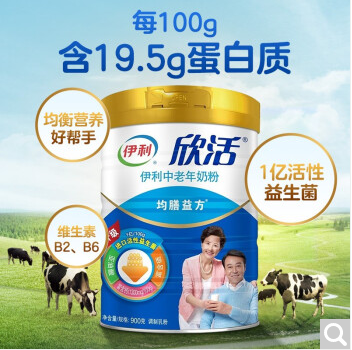 伊利欣活 中老年奶粉听装 成人奶餐 益生菌奶粉 高钙 老年 冲饮 900g罐装粉 营养早餐