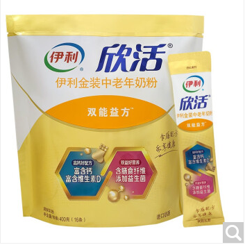 伊利欣活 金装中老年奶粉 高钙 益生菌 膳食纤维 营养早餐 400g袋装 独立小包装16*25g
