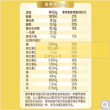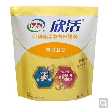 商品名称:伊利欣活 金装中老年奶粉 高钙 益生菌 膳食纤维 营养早餐 400g袋装 独立小包装16*25g