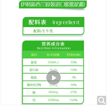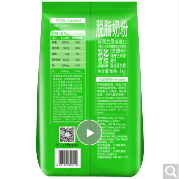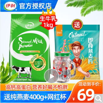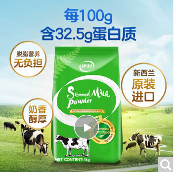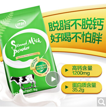 商品名称:伊利奶粉 新西兰原装进口奶粉 脱脂奶粉1kg袋装 成人奶粉 女士中老年全家营养高钙无蔗糖早餐牛奶粉