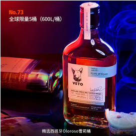 商品名称:全球限量5桶 | 单一麦芽威士忌酒 小瓶酒 No.73单瓶|双桶陈年|VETO-高地雪莉桶 350ml/瓶