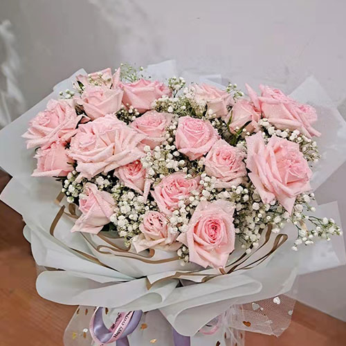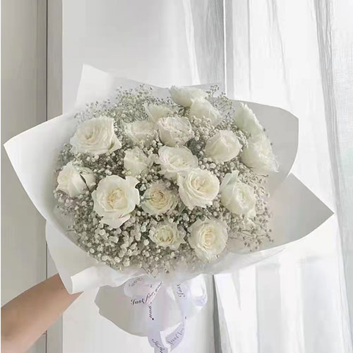 商品名称:雪山 白玫 满天星 花束