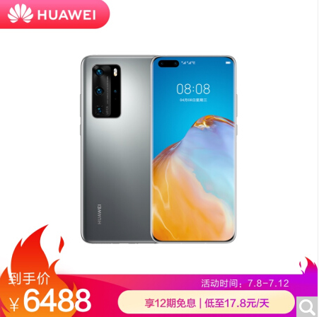 商品名称:华为 HUAWEI P40 Pro 麒麟990 5G SoC芯片 5000万超感知徕卡四摄 50倍数字变焦 8GB+256GB冰霜银全网通5G手机